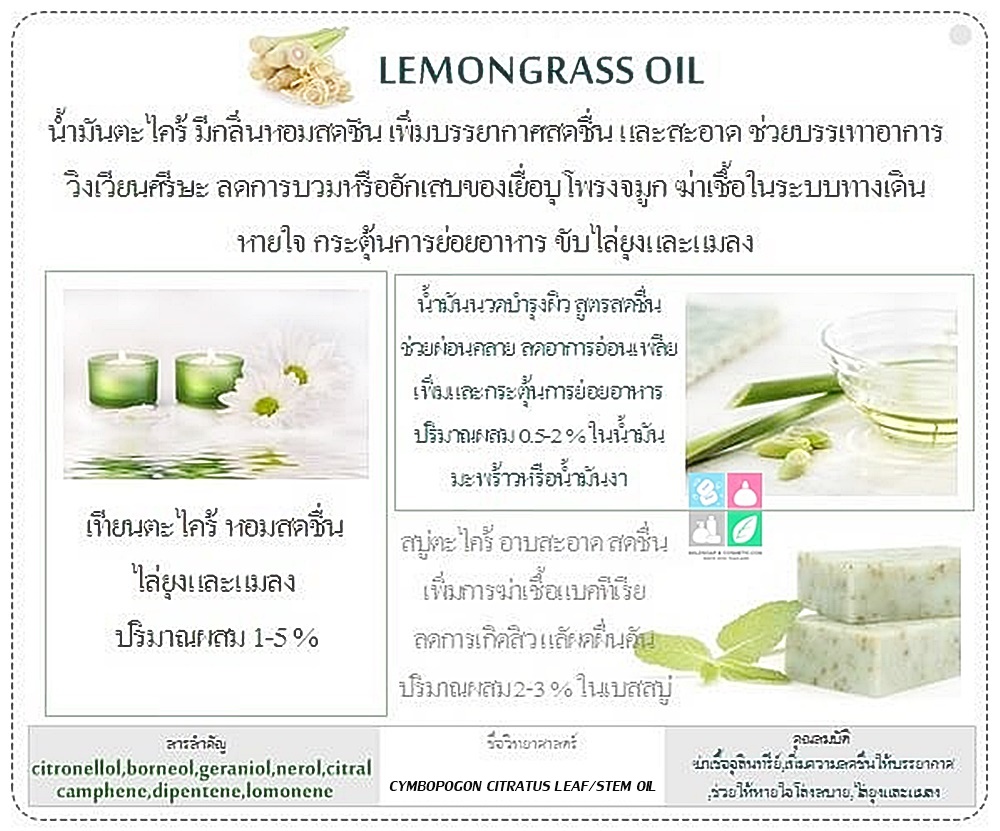 น้ำมันหอมระเหยจากตะไคร้ น้ำมันหอมระเหย ตะไคร้บ้าน