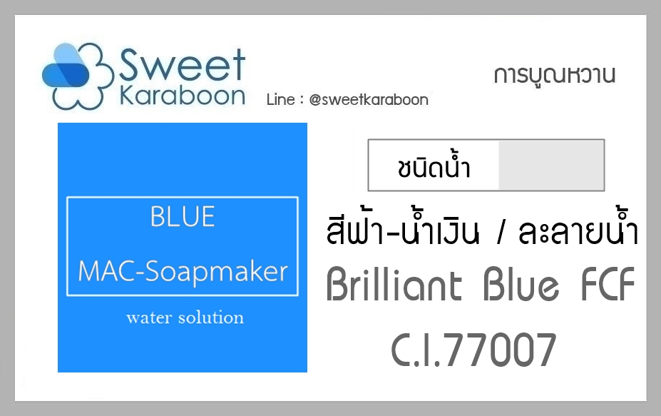 Color Blue : Brilliant Blue FCF Liquid /CI 42090/FD&C No Blue 1 สีฟ้า-น้ำเงิน ของเหลว ละลายน้ำได้ดี