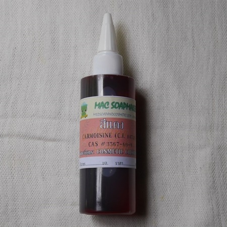 120 มล. ขวดบีบ วิธีใช้ : สำหรับทำสบู่ใส สบู่ขุ่น และเครื่องสำอาง ให้แดง และในสบู่ CP และสบู่ HP ให้สีแดง