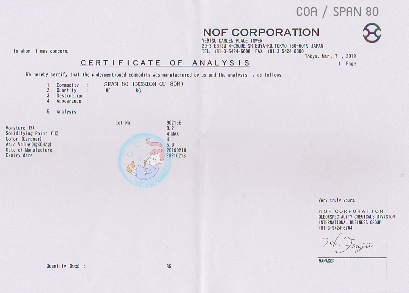 หมวดหมู่ | Emulsifying/สารก่ออิมัลชั่น | |