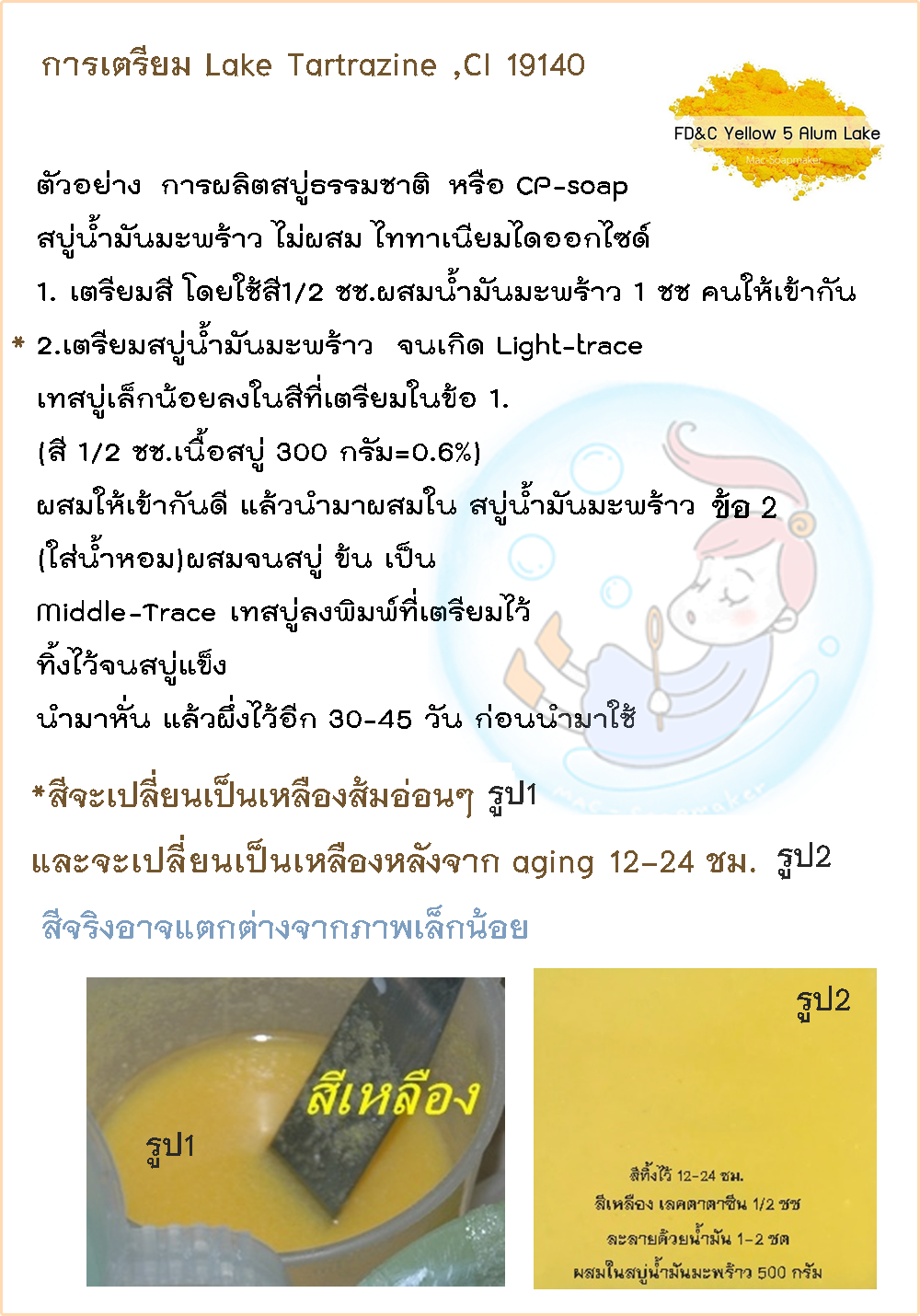 เป็นเม็ดสีที่ใช้แต่งสี ซึ่งมีพื้นฐานมาจาก FD&C Yellow 5/CI 19140