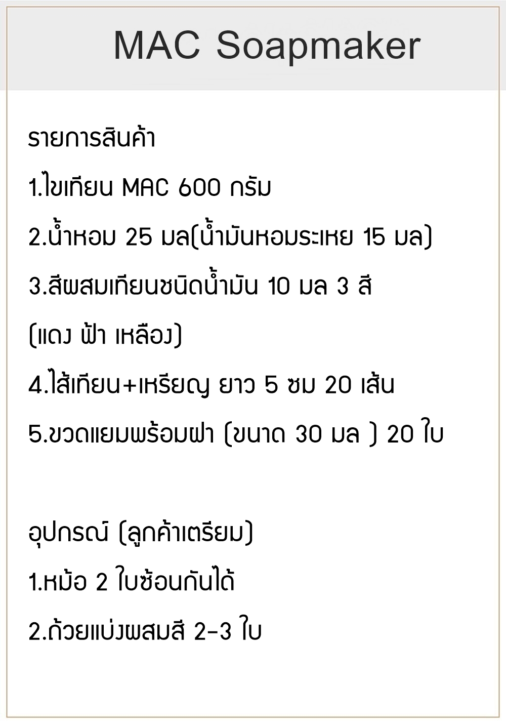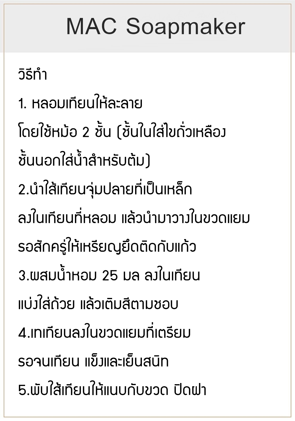 1.ไขเทียน MAC(ผลิตจาก ไขปาล์ม ไขถั่วเหลือง ไขผึ้ง) 600 กรัม