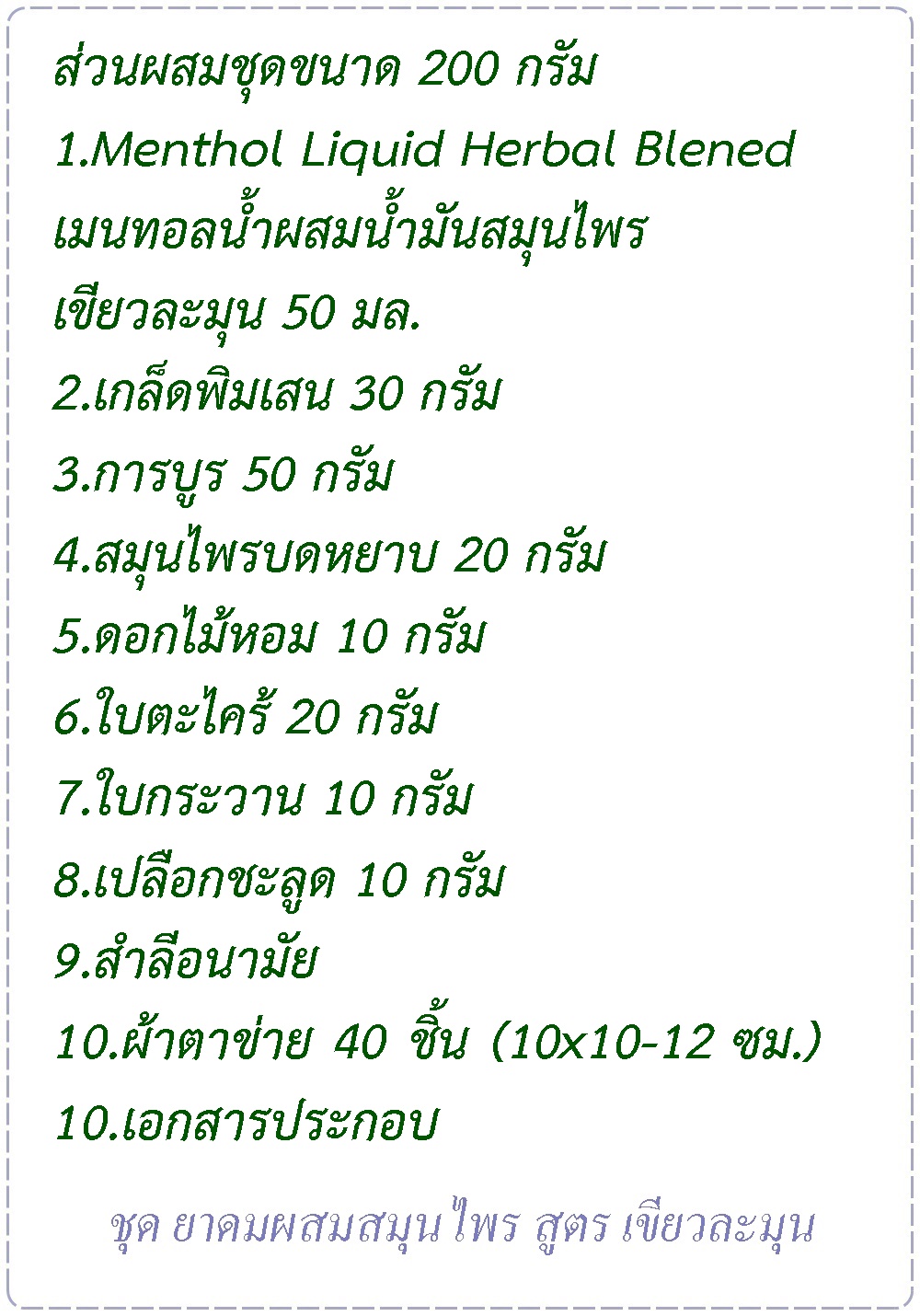 สินค้าจัดชุด ยาดมผสมสมุนไพร สูตรเขียวละมุนส่วนผสม ยาดมผสมสมุนไพร