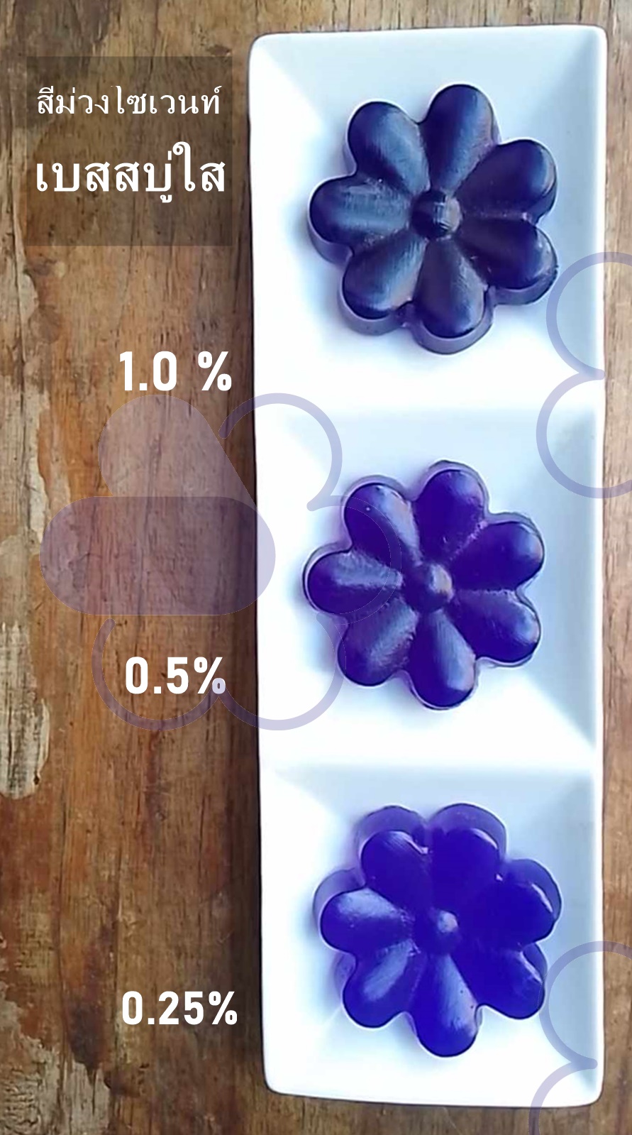 ปริมาณที่แนะนำ: สีมีความเข้มของสีสูงมาก ใช้ปริมาณน้อย 0.01-1.0 %