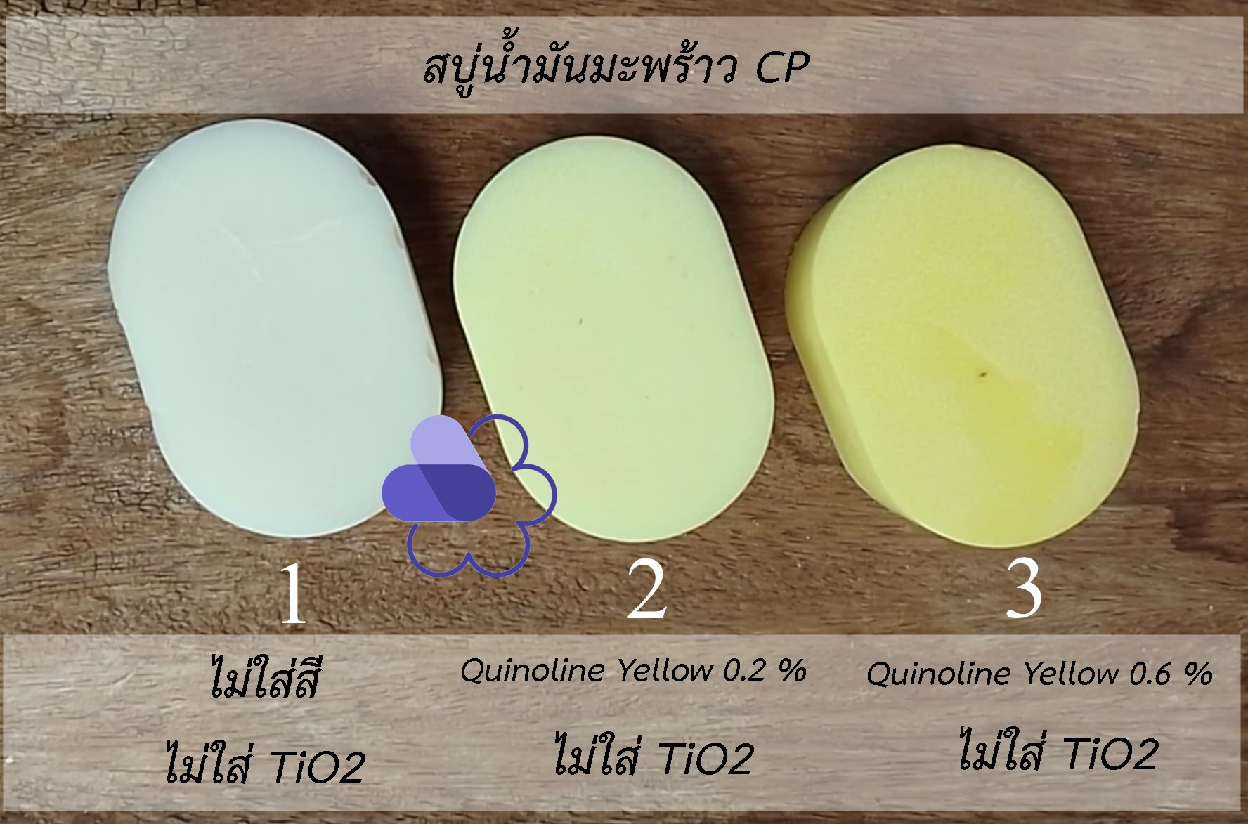การเตรียม: การละลายสี: ค่อยๆเติมน้ำลงในสีที่ละน้อย หรือ สี1ส่วน ต่อน้ำ2ส่วน กวนให้เข้ากันคล้ายแป้งเปียก ป้องกันไม่ให้สีจับตัวกันเป็นก้อน ทำให้ละลายยาก แล้วค่อยๆ เติมน้ำส่วนที่เหลือลงไป แล้วนำไปผสมหรือค่อยๆหยด ลงในผลิตภัณฑ์ส่วนที่เป็นน้ำ เช่น สบู่แบบธรรมชาติ CP,HP , สบู่เหลว, ครีมอาบน้ำ, โลชั่น, บาทบอม, แชมพู เจลแอกอฮอล์ อื่นๆ ที่มีส่วนผสมเป็นน้ำ ***ในการผลิตสบู่ธรรมชาติ สีอาจเปลี่ยนเป็น เหลือง-แดง ***คุณสมบัติ 1.จุดหลอมเหลว 240 °C